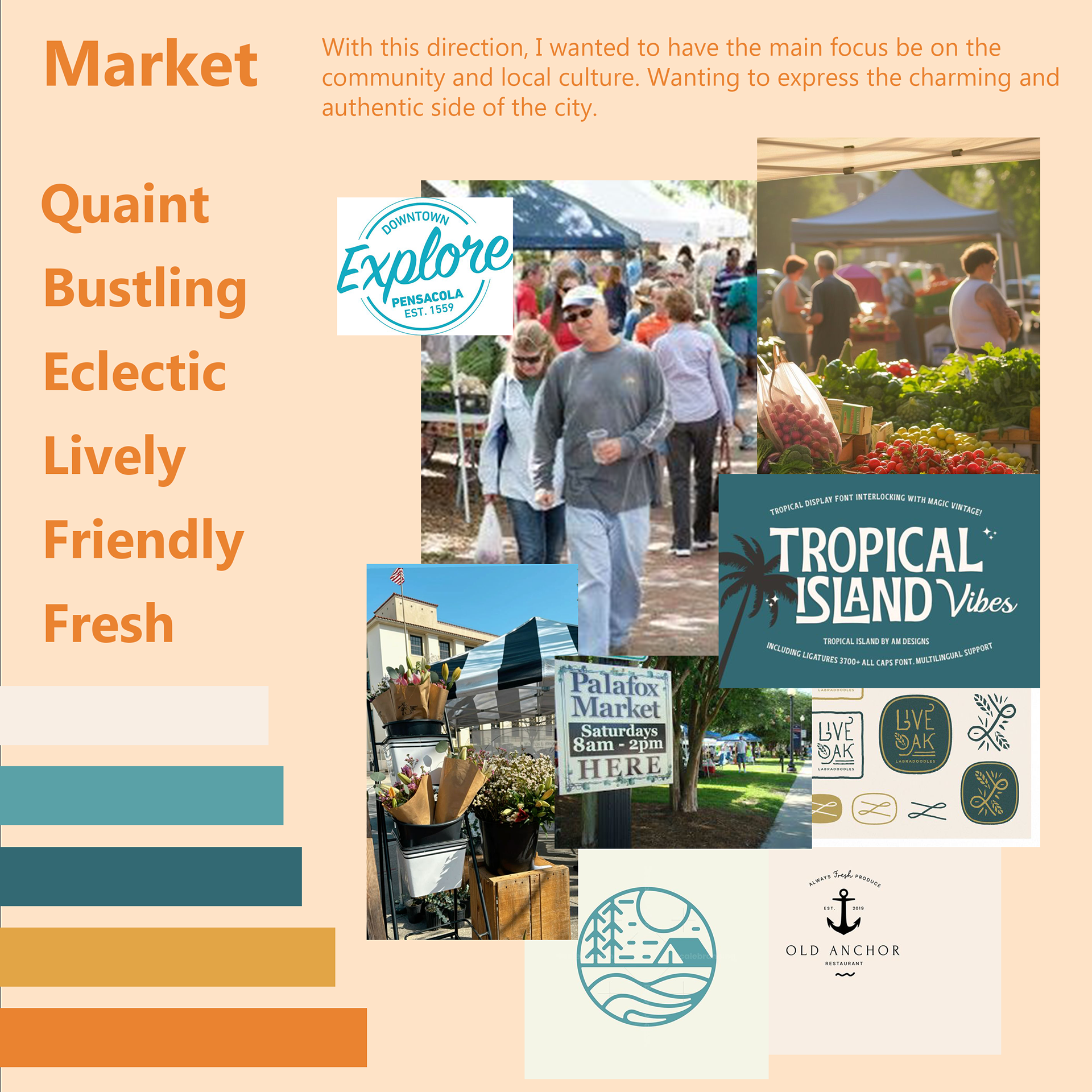For this assignment I decided to explore three activities and vibes when visiting Pensacola. Each mood board includes an explanation as to what that specific style emphasizes.
