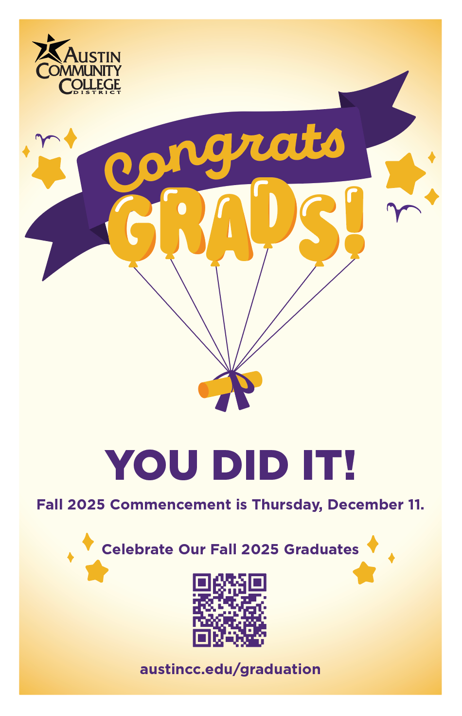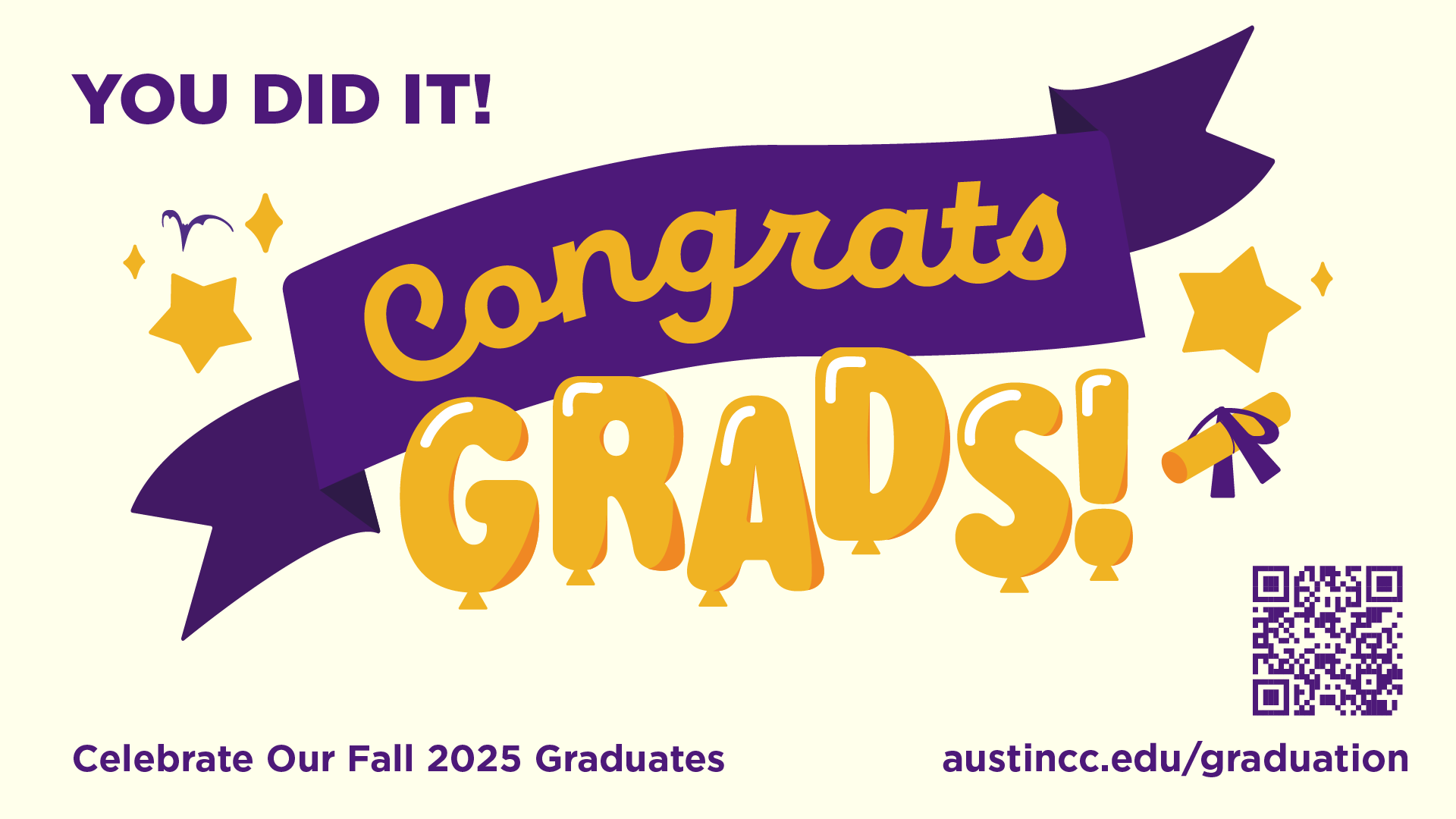 The Congrats Grads campaign is to celebrate the graduates of Fall 2025. I had a lot of creative freedom with this assignment and got to explore a lot of different looks for the occasion. I wanted to create something that fit ACC’s brand while staying fun and celebratory.