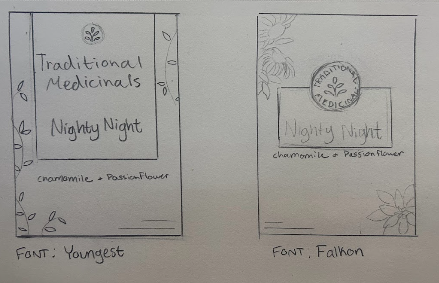 The original packaging uses a natural, wellness-oriented design style that combines detailed botanical illustrations with clean, modern branding. I felt that the original design was too busy and overwhelming for the average consumer, so for my redesign, I aimed to move toward a softer, more gentle aesthetic that feels calmer and more approachable than the original.